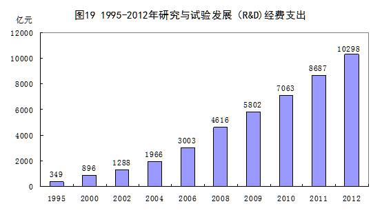 科技事业成果丰硕。30多年来,党中央、国务院始终把科技创新摆在国家发展全局的核心位置,不断加大科技投入,深化科技体制改革,完善科技创新评价标准、激励机制和转化机制,我国科技事业取得丰硕的成果。2012年,研究与试验发展(R&D)经费支出达到10298亿元,比1995年增长28.5倍,占国内生产总值的比重为1.98%,上升1.4个百分点;发明专利申请授权21.71万件,增长63倍。一批重大科技成果相继问世。建成了正负电子对撞机等重大科学工程,秦山、大亚湾核电站并网发电成功,银河系列巨型计算机不断升级并全部研制成功。近年来,我国在载人航天、载人深潜、基因工程、高性能计算机、新材料、量子信息、3D打印等领域取得了重大突破,为成功转型为创新型国家奠定良好基础。