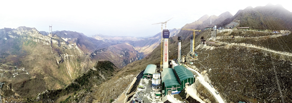 花江峡谷大桥6号主塔。