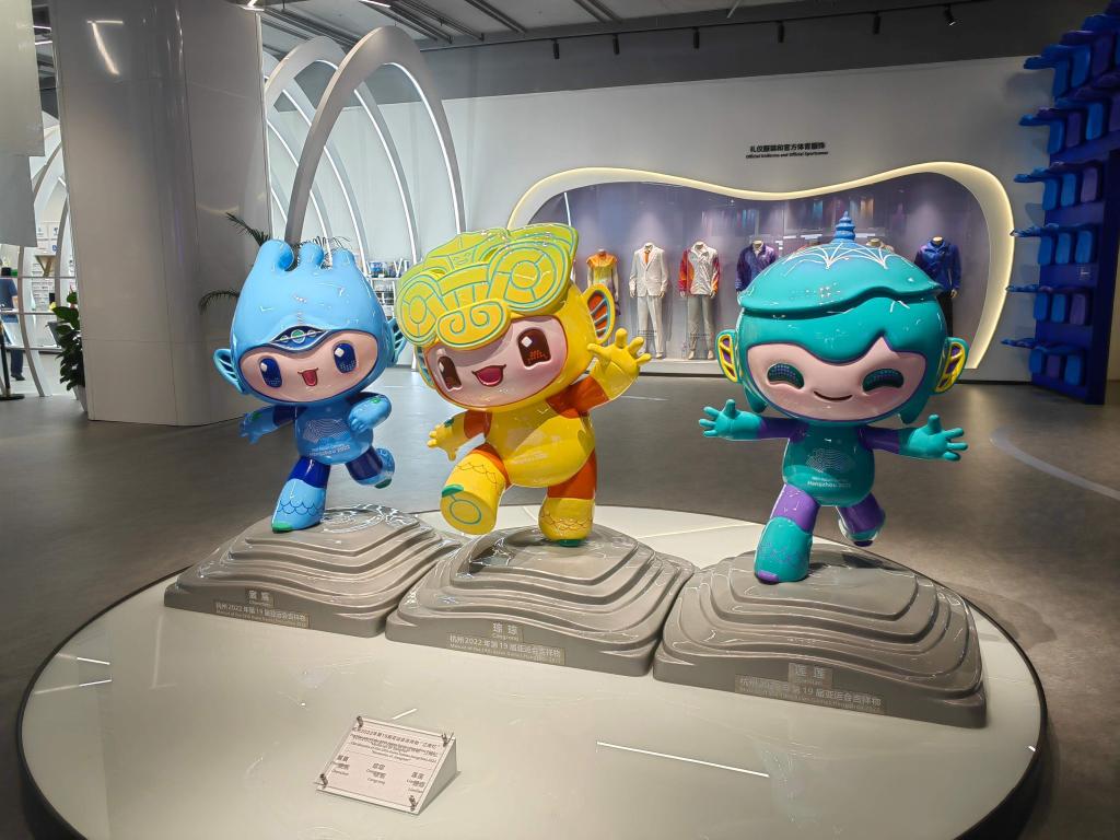 图为杭州亚运会吉祥物“琮琮”“莲莲”(右一)“宸宸”(左一)。左翰嫡 摄